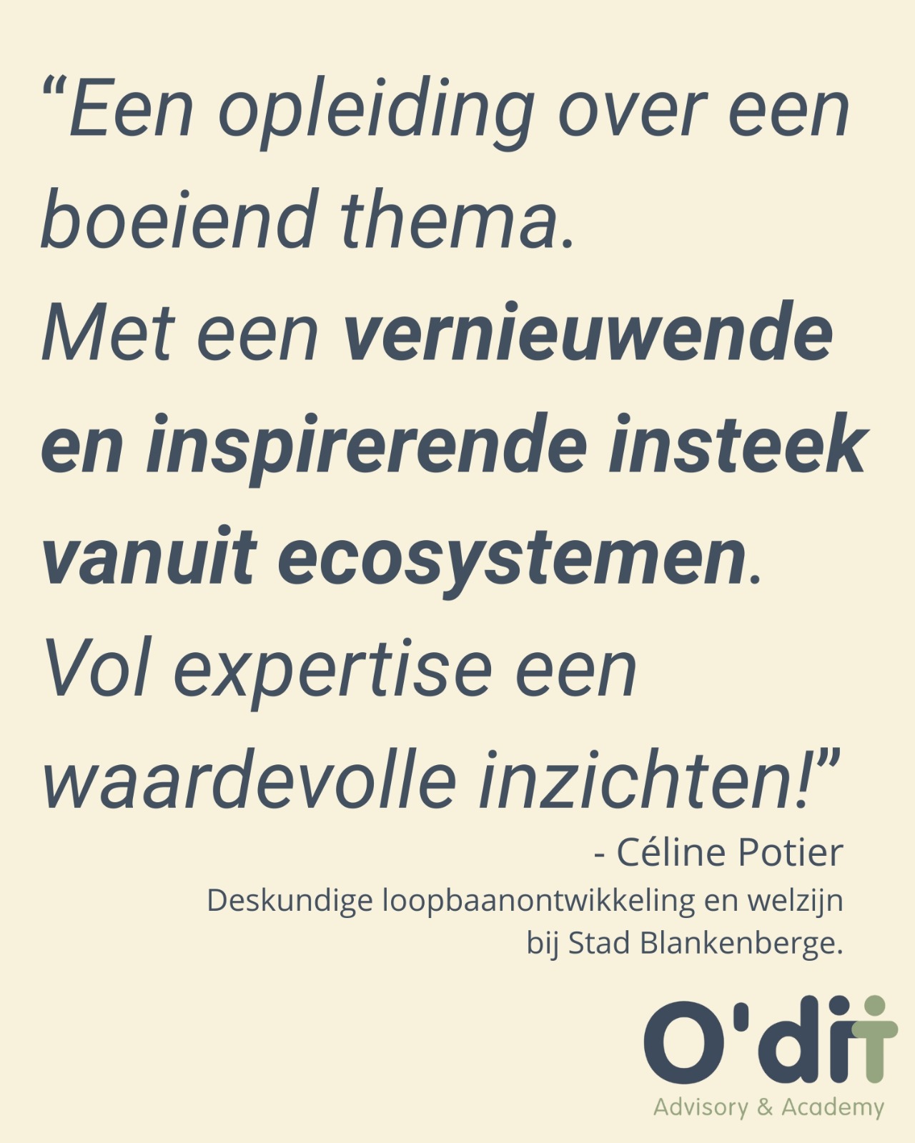 We vertrekken vanuit de natuur: ecosystemen tonen hoe diversiteit, samenwerking en veerkracht samenhangen. Vanuit die bril ontdek je hoe je welzijn op de werkvloer duurzaam kan verankeren. Geen losse initiatieven die snel uitdoven, maar een beleid dat leeft, gedragen wordt en mee-ademt met je organisatie.